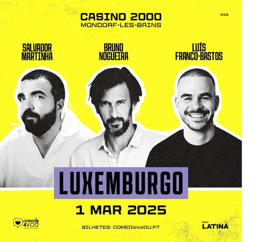 Os três comediantes vão subir ao palco do Casino 2000, em Mondorf-les-Bains, no dia 1 de março de 2025 e os bilhetes já estão à venda. É a primeira vez que vão atuar juntos fora de Portugal.