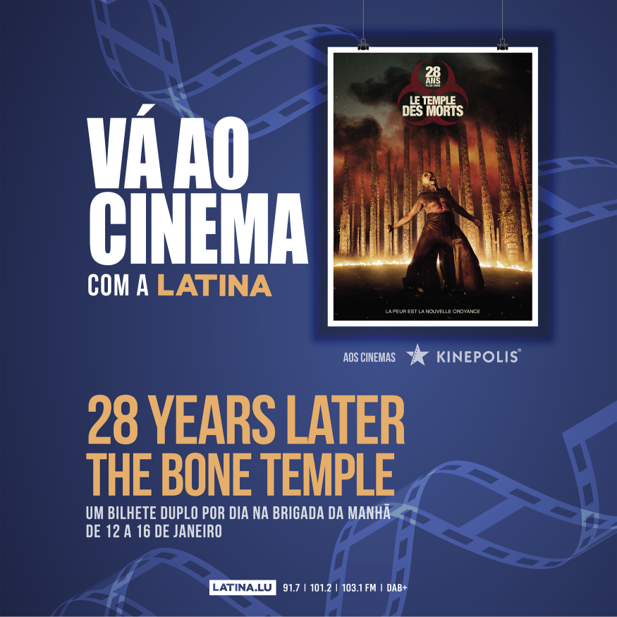 • Prémio: diariamente vão ser oferecidos bilhetes duplos para o filme "28 Years Later -The Bone Temple", em ebixição nas salas de cinema Kinepolis a partir de 14/01;