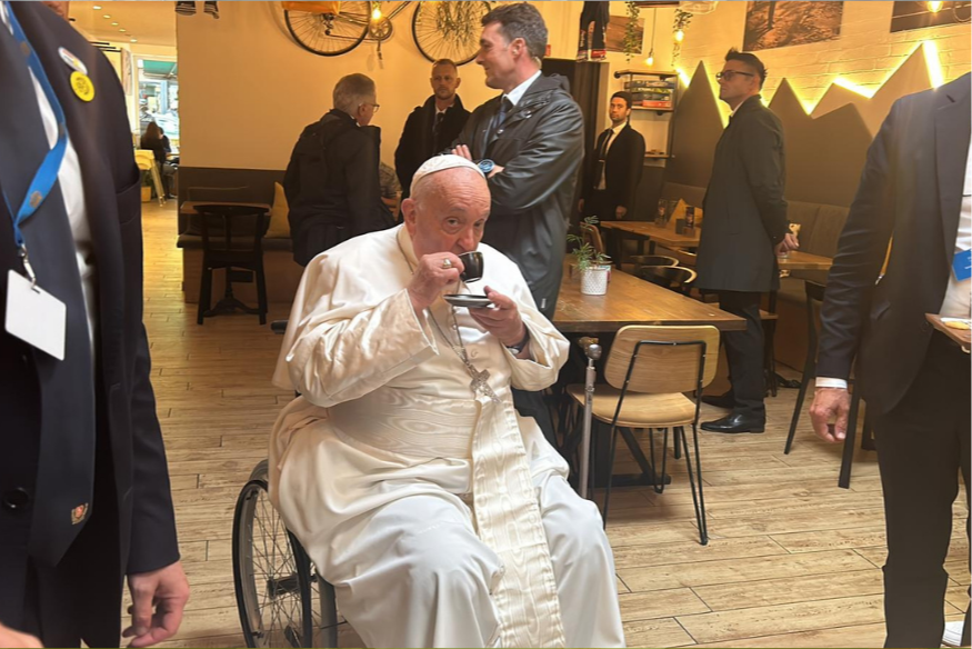 Apesar de a visita estar cronometrada ao minuto, houve tempo para tomar café. Antes do encontro na catedral, Francisco decidiu entrar no café Grupetto, na rue Notre-Dame, para beber um café. Terá bebido um expresso, que disse ser “muito bom”. Ainda pagou pelo mesmo e deixou uma gorjeta, segundo as entrevistas dadas pelos responsáveis do estabelecimento aos media nacionais.